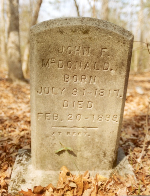 - Gravestones in the McDonald family cemetery on Crains Creek in Cameron, N. C., visited in 2003.
