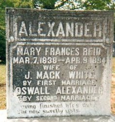 In researching Oswald Alexander of Mecklenburg County, N. C., (1836-1915) I found that after his death, his wife Mary R. Alexander applied for a Confederate widow’s pension. However, in the cemetery of Sharon Presbyterian Church in Charlotte, I had seen and photographed the grave monument of Oswald’s wife, Mary Reid Alexander, who died in 1894!